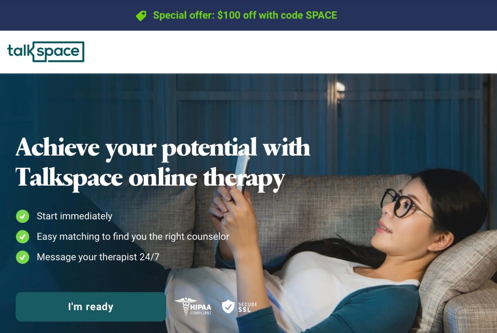 As our lives become busier and more stressful, finding the time and resources to prioritize our mental health can be challenging. Online therapy platforms, like Talkspace, provide a convenient and flexible solution for people seeking professional help to improve their mental health. In this comprehensive Talkspace review, we’ll take a closer look at the platform’s features, services, and pricing, as well as discuss the pros and cons, to help you decide if it’s the right fit for your needs. Plus, don’t forget to take advantage of their $100 off promotion with the code SPACE!